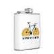 The flask itself is fine. It’s a cheap flask, obviously bought in bulk, however am prepared to overlook that. Given that it is a personalized item, I would have liked to have seen gift boxing instead of the generic packaging. Terrible printing, and/or quality. It’s a cheap, tacky vinyl. It is not cut straight and is also applied in a way that it is overhanging the bottom, causing the glue to catch on items and it will eventually roll and tear, damaging the wrap.