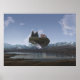 Beautiful piece of digital art! Fantasy floating city. Rural house on a fantasy floating piece of land surrounded by a beautiful alpine scene at night