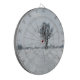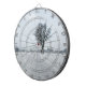Snowy country road in Sweden on a cold winter day. Big tree next to the road and a little village in distance. Photography.