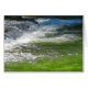 An abstract design in greens and blues of wild rushing water