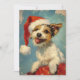 "Capture the festive spirit with our charming Christmas card cover featuring an adorable Russell Terrier donning a Santa hat. This heartwarming design is sure to bring joy and smiles to your loved ones, making it a perfect choice to spread holiday cheer."