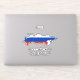 Russia Flag Map Outline Sticker in the outline of the Russia map. The map is infused with the pattern and the colours from the Russia national flag. Small stickers with the country name are also included. Russia map sticker is the perfect sticky gift that can be placed anywhere your heart desire. © 2022 CountriesOfTheWorld
