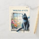Russian Blue Cat in Window with Summer Flowers Postcard