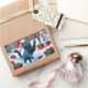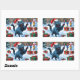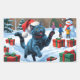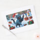 Russian Blue Cat Running Snow with Christmas Hat Rectangular Sticker
