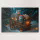 Russian Blue Cat Snowy Sleigh Christmas Decor Jigsaw Puzzle