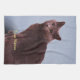 In this adorable photo of a lovely Russian Blue cat, the kitty turns to look wistfully at you. The fluffy cat is printed against a soft, pale blue faux paper textured background. Add your name in the text field on this page to personalise your cat gift, or erase the letters for the full effect of the cat's meow.
