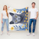 Russian Blue Cat Yellow Flowers Fleece Blanket
