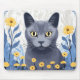 Russian Blue Cat Yellow Flowers Mouse Pad