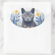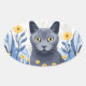 Russian Blue Cat Yellow Flowers Oval Sticker
