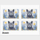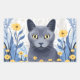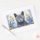 Russian Blue Cat Yellow Flowers Rectangular Sticker