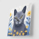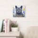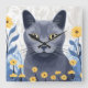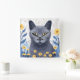 Russian Blue Cat Yellow Flowers Square Wall Clock