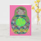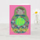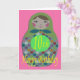 10th Birthday card with an image of a classic shaped Russian Doll with coloured circles, on a pink background.