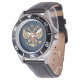 My husband loves the watch, he likes the dial, the graphics, the band, and it keeps perfect time.