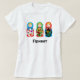 Three nesting dolls say "Hi" in Russian on the front and Goodbye on the back. Lettering is in Cyrillic. Great gift for a Russian teacher, Russian student or Russian!