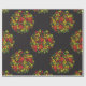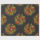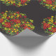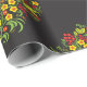 Russian Hohloma wrapping paper, Russian art, red strawberries, yellow leaves, black background