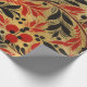 Russian Hohloma wrapping paper, Russian art, red strawberries, yellow leaves, black background