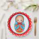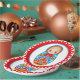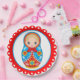 This paper plate is in red, blue, yellow and white colours. The plate is designed with matryoshka, Russian nesting doll on lace background, ideal for any party celebration.