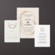 Rust and white. Simple foliage. Modern minimalist wedding Invitation.