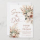 Set the tone for your big day with this Rust Boho Terracotta Save The Date Card. This design features a stunning arrangement of dried florals, eucalyptus, and feathery pampas grass in a warm, earthy colour palette of terracotta, cream, and dusty sage.