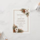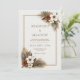 Welcome your guests with the warm, sophisticated charm of this earthy botanical composition. The design is anchored by lush corner arrangements featuring a standout rust orange flower and delicate white botanical bloom accents with dark, detailed centres. Highly textured bronzed palm leaf motifs and sharp green foliage create a modern boho vibe, while a slim double-line bronze frame provides a polished focal point against the subtly textured cream backdrop. This wedding invitation is an exceptional choice for a desert boho ceremony, a rustic autumn celebration, or a refined outdoor event. It ensures your event details are presented with an organic, high-end aesthetic that feels both grounded and elegant from the moment it is received.
