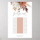 Rust Terracotta Florals Modern Script Single Table Wedding Seating Chart Find Your Seat is in a stylish set script and the rest of the text you can easily personalize. A bouquet of terracotta and cream autumn colored florals is at the top.