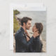 The left-hand edge of this elegant modern wedding invitation features a burnt orange and rust watercolor agate border trimmed with faux gold glitter. The customisable text combines gold-coloured handwriting, copperplate and italic fonts on a dark emerald green background. Easily replace the sample image on the back with a photo of the couple.