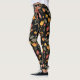 Rust Gold &Green Flowers & Birds on Black Leggings