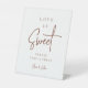 Direct guests to your dessert table or candy bar with this simple pedestal sign featuring "Love is sweet, please take a treat" in elegant handwritten script and classic serif lettering. Colorway: Rust, a warm earth tone terracotta.
