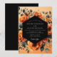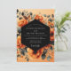 A dramatic and artistic design featuring a striking contrast between warm and cool tones. Lush, painterly peonies in rich shades of rust and terracotta bloom vibrantly against a soft apricot wash background. Deep indigo and charcoal leaves create a moody, romantic depth, making this perfect for an elegant autumn event.