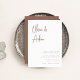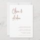 A beautiful typography based wedding invitation featuring your names in modern terracotta rust handwritten script lettering at the top. Personalise with your wedding details in classic serif lettering aligned at the lower right.