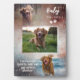Honour your beloved pet with this photo plaque with three photos of your dog with a textured background in navy and rust. Your were our favourite hello and our hardest goodbye, with your dog's name and years living and two cute paw prints in white.
