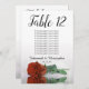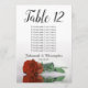 These beautiful table number cards will make it easy for your guests to find their seats at your wedding reception. They feature a simple yet elegant design with script calligraphy lettering and a single long-stemmed rust orange or burnt umber coloured rose lying on its side reflecting in water. The card includes a seating chart with 10 names. There is also space for the couple's names and wedding date. This card is available in a variety of sizes and is larger than our standard table number cards.