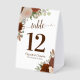 These rustic and beautiful table tent signs will make it easy for your guests to find their seats at your wedding reception. They feature an elegant boho chic design with hand painted watercolor roses in shades of rust orange, burnt umber, and coral peach, as well as eucalyptus leaves and autumn foliage. Perfect for a fall or fall ceremony.