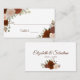 These elegant escort cards are designed to for you to write in your guest's name and table number. They feature a classic white background with hand painted watercolor roses & foliage in autumn or fall shades of rust orange and burnt umber. The front is a write-in space for your guest's name and table number, and the back has the names of the wedding couple in fancy script lettering along with the wedding date.
