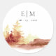 Rust Orange Yellow Fall Trees Monogram Wedding Classic Round Sticker