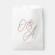 A beautiful typography based wedding favour bag design featuring your initials in oversized terracotta rust script lettering with your wedding date beneath in classic serif lettering.