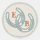 Rust Teal Western Horseshoe Wedding Monogram Classic Round Sticker
