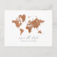 Rust watercolor world map wedding save the date postcard. With a beautiful rust watercolor world map, moveable heart to position over your location of choice and space for name location and additional details. Ideal for foreign location weddings or just because you love your state