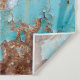 Rusted blue metal canvas, textured history painted by time and weather's embrace.