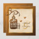 This autumn wedding invitation on basic paper has a pair of copper foil look love birds and an ornate FAUX rusted look iron bird cage on a subtle floral background. If you require any matching items in this design, email your request to niteowlstudio@gmail.com.