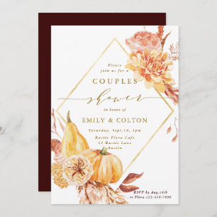 Rustic Fall Floral Gold Geometric Couples Shower Invitation
