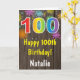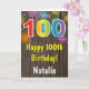 Rustic 100th Birthday Colourful Rainbow Fireworks Card with personalised name. For further customisation, please click the "Customise it" button and use our design tool to modify this template.