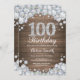 Rustic 100th Birthday Silver Diamond Invitation