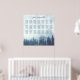 This 21 table wedding seating chart has table assignments for 210 guests - 10 people per table. The design is rustic yet elegant, featuring a woodland mountain scene with blue spruce or pine trees shrouded in mist or fog. There is a lacy script calligraphy title reading "please find your table" as well as space for the names of the couple and the wedding date. Perfect for an outdoor or wilderness destination wedding.