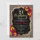 Rustic 21st Birthday - Roses Sunflowers Wood Invitation