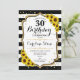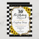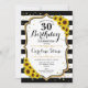 30th Birthday Invitation. Elegant design with sunflowers, faux glitter gold and black & white stripes. Features stylish script font and confetti. Perfect for an elegant birthday party. Customize with your own details.