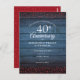 Featuring delicate ruby love hearts confetti on a blue rustic wood background. Personalise with your special forty years ruby anniversary save the date information in chic lettering. Designed by Thisisnotme©