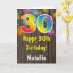 Rustic 30th Birthday Colourful Rainbow Fireworks Card with personalised name. For further customisation, please click the "Customise it" button and use our design tool to modify this template.