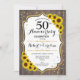 Rustic 50th Anniversary - Sunflowers Wood Gold Invitation