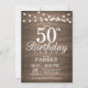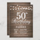 Rustic 50th Birthday Invitation with String Lights Wood Background. 16th 18th 21st 30th 40th 50th 60th 70th 80th 90th 100th, Any age. For further customisation, please click the "Customise it" button and use our design tool to modify this template.